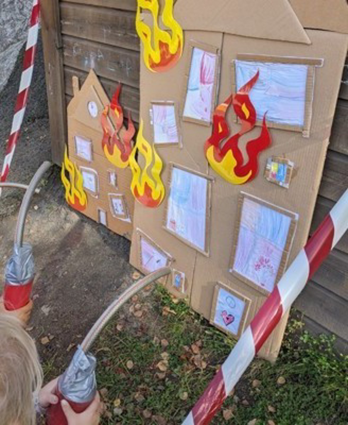 Alle barna lekte brannmenn og deltok gjennom ulike aktiviteter denne uka. De eldste barna har blant annet hatt brannøvelser på egen avdeling .De har hatt samtaler og refleksjoner rundt brann og brannutstyr i barnehagen og hjemme.En ekte brannmann kom i fullt utstyr og hilste på barna. Hele uken var preget av tema brannvern og ble avsluttet med en felles brannøvelse, hvor store og små evakuerte barnehagen !